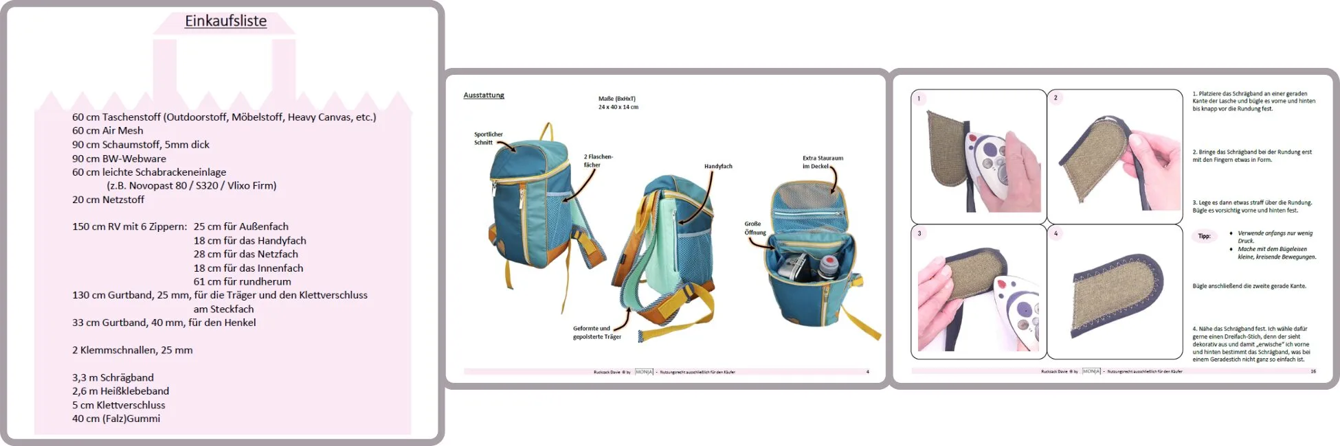 Collage aus der Anleitung zu Rucksack Davie